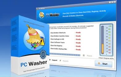 PC Washer is an easy to use PC cleaning software that allows you to clean your hard disk and registry, it can locate and remove garbage files in your hard disk to release the wasted disk space, clean and repair the registry to make your system more stable, erase all your activity records on the computer.